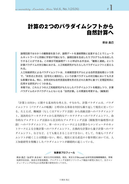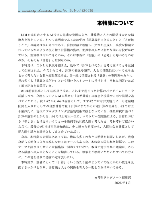 n月刊ラムダノート「特集:計算とは何か」Vol.6, No.1(2026)