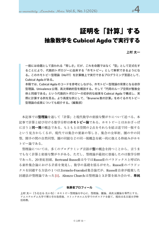 #4 証明を「計算」する ― 抽象数学をCubical Agdaで実行する 上村太一