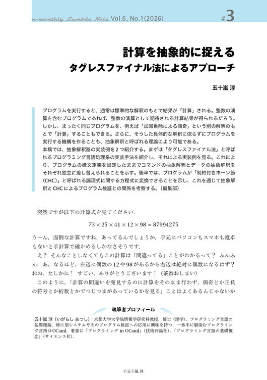 #3 計算を抽象的に捉える ― タグレスファイナル法によるアプローチ 五十嵐淳